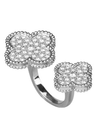 大小各異的四葉草圖案,以獨特姿態(tài)各據(jù)一方,鑲上顆顆瑰麗鉆石。不拘一格的晶瑩光芒呼應著女性的優(yōu)雅氣度。