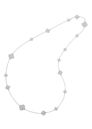 16片四葉草圖案長(zhǎng)項(xiàng)鏈Van Cleef & Arples 梵克雅寶Magic Alhambra Pavé Diamonds夢(mèng)幻鑲鉆系列配搭A(yù)lhambra其它系列或Perlée系列均十分得宜,靈活多變的配搭彰顯女性的特立獨(dú)行與無(wú)出奇右的巧思。