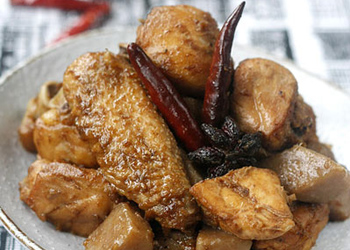 原料:一只二斤的三黃雞、一個一斤的芋頭。 輔料:蔥半根、姜4大片、大蒜5瓣、辣椒3顆、八角2個。 調(diào)料:橄欖油1勺、老抽1大勺、料酒2大勺、鹽1小勺、冰糖依據(jù)個人口味添加。 做法: 1、三黃雞切塊,洗凈。雞胗、雞心和雞肝不要丟棄,待會兒也可以一起燉。在市場買雞的時候可以讓攤主忙幫清理內(nèi)臟剁成塊。 2、做鍋開水,把雞塊放入,撇去血沫后撈出備用。 3、在鍋里倒入橄欖油放入蔥段、姜片、拍松的蒜瓣、八角和辣椒,煸炒出香味。 4、放入焯好雞塊翻炒兩三分鐘。 5、倒入老抽上色調(diào)味。 6、倒入料酒。 7、倒入開水淹過雞塊,蓋上鍋蓋轉(zhuǎn)中小火燉半小時。 8、湯汁收到一半的時候放入兩塊冰糖。 9、放入芋頭塊再燉十五分鐘。 10、出鍋前放入鹽調(diào)味,收濃湯汁后便可出鍋享用了。 |