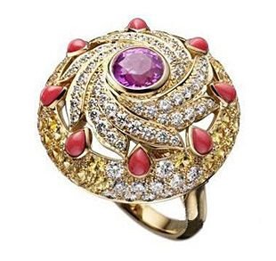 這款新娘戒指具有奢華的高貴氣質(zhì),以金黃色為主調(diào),圍繞著戒環(huán)所鑲嵌的紅色橢圓寶石將整個(gè)戒指的高貴感完全的提升,黃色的鉆石與銀色的鉆石相互鑲嵌搭配,中間的圓紫色顆粒鉆石是這款新娘婚戒的點(diǎn)睛之筆,將新娘的指間變的更加具有高貴的奢華感。