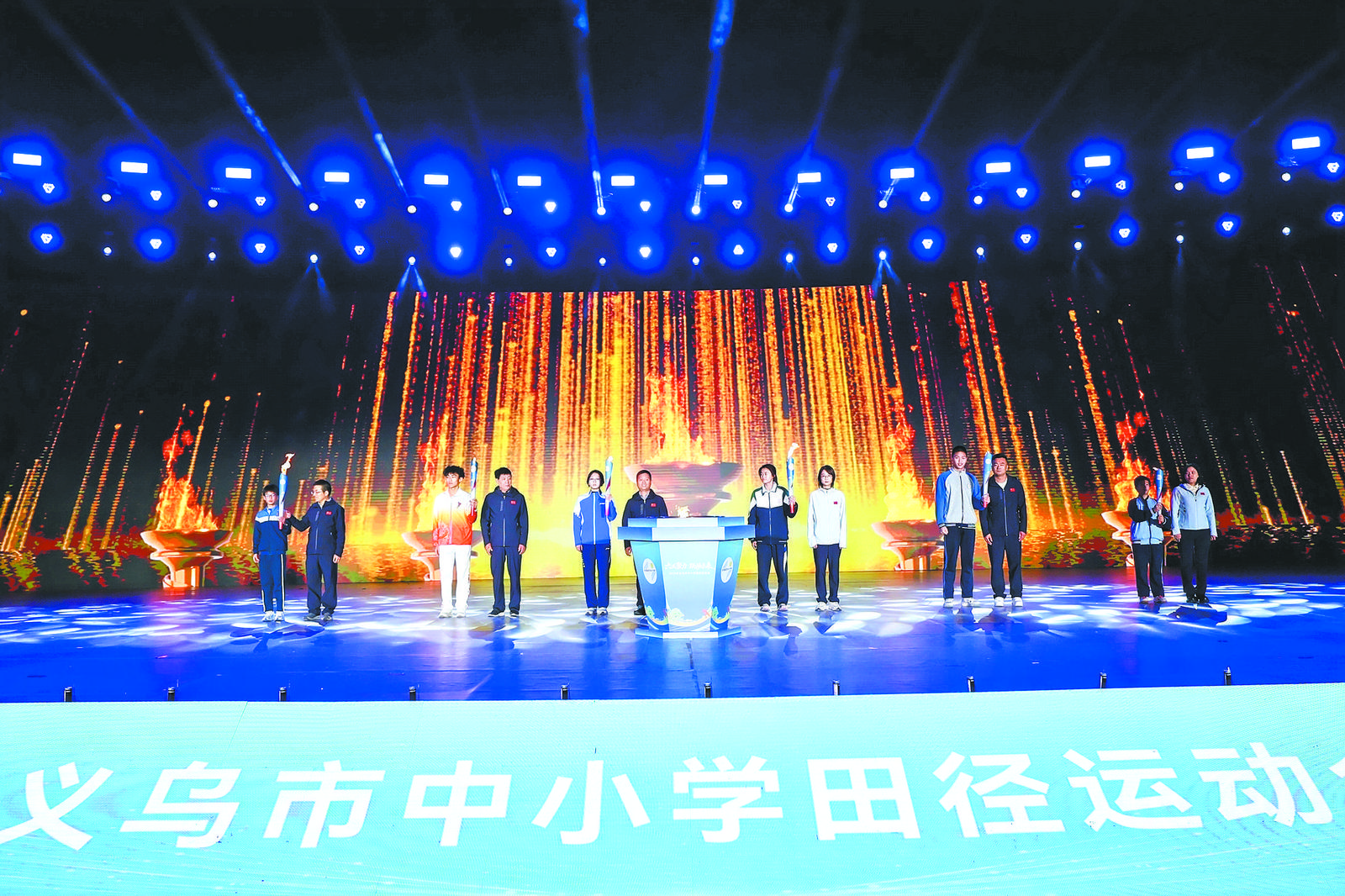光影交織映青春,“六義”薪火傳精神。昨日,2025年義烏市中小學(xué)田徑運(yùn)動會開幕式在樹德中學(xué)舉行。市委常委、常務(wù)副市長龔淑娟出席開幕式。 開幕式上,伴隨著激昂奮進(jìn)的《運(yùn)動員進(jìn)行曲》,參加運(yùn)動會開幕式的各學(xué)校運(yùn)動員方隊依次入場,他們步伐整齊、精神抖擻,充分展現(xiàn)出新時代中小學(xué)生積極向上的精神風(fēng)貌。隨后,運(yùn)動員代表與裁判員代表先后宣誓,承諾恪守體育精神、秉持公平公正。 作為開幕式的核心亮點(diǎn),“六義”火炬接力點(diǎn)燃全場激情。6位優(yōu)秀教師代表與20余名獲獎學(xué)生運(yùn)動員組成火炬隊,分別手持忠義、孝義、仁義、節(jié)義、俠義、信義之火入場。領(lǐng)跑的朱有奶、朱向陽等教師代表以深耕教育的堅守詮釋“六義”內(nèi)涵,學(xué)生代表則以賽場佳績展現(xiàn)青春風(fēng)采。六道火種最終匯聚舞臺中央,共同點(diǎn)燃主火炬,象征著“六義”文化與體育精神的傳承交融。 這場火炬接力的背后,是義烏扎實(shí)推進(jìn)體教融合的生動實(shí)踐。近年來,我市堅持“健康第一、全面發(fā)展”理念,構(gòu)建起“普及+特色”的育人體系,打造了112所體育特色布點(diǎn)校、43所全國校園足球特色校和5所省級陽光體育基地校;同時緊抓發(fā)展機(jī)遇,成功爭取“體藝賽事省級直推”擴(kuò)權(quán)賦能事項,在競技體育領(lǐng)域也取得了不少亮眼成績,培育出羽毛球世界冠軍、攀巖和200米全國冠軍等優(yōu)秀運(yùn)動員,還有8人獲得“國家一級運(yùn)動員”稱號。 據(jù)悉,本屆運(yùn)動會以“‘六義’聚力·躍動未來”為主題,為期三天,共有來自79所學(xué)校、85支代表隊、1580名運(yùn)動員參賽,規(guī)模創(chuàng)歷屆之最,將在短跑、跳高、跳遠(yuǎn)等15個項目中展開激烈角逐。 |