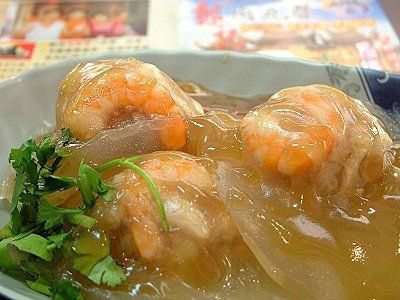 水晶肉丸 主料:豬肉(瘦)250克、豬肉(肥)55克 輔料: 百合(干)70克、火腿20克、香菇(鮮)20克、雞蛋清50克、油菜心30克 調(diào)料: 味精3克、胡椒粉1克、鹽7克 制作方法: 1、香菇去蒂,洗凈;油菜心擇洗干凈; 2、熟火腿切片; 3、把瘦肉和肥肉放在一起剁砸成肉茸; 4、肉茸中加入精鹽、雞蛋清、味精,攪勻; 5、攪勻的肉茸擠成約15 克重的丸子; 6、干百合洗凈,碾成粉;肉丸子放入干百合粉內(nèi)沾勻;取出肉丸子裝笊籬,放冷水中浸一下,隨即取出,再沾百合粉,如此重復(fù)三次; 7、最后將沾有百合粉的肉丸子放進(jìn)開水鍋中煮,熟后撈起裝入大碗; 8、鮮湯500毫升燒開,放入精鹽、味精、胡椒粉,將湯倒入盛肉丸的大碗內(nèi),淋雞油;把香菇、火腿、菜心放在上面即可。 健康提示:健脾開胃,補(bǔ)虛養(yǎng)身,治療營(yíng)養(yǎng)不良。 |