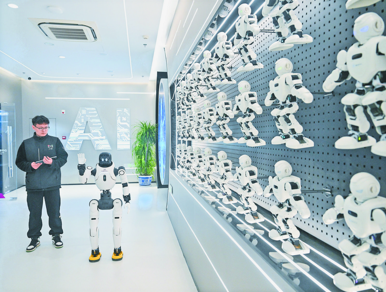 12月4日,在南京人工智能生態(tài)街區(qū)的“AI·模坊”南京智能體集散中心,一款華夏機(jī)器人在打招呼。 近年來,江蘇南京依托中國(南京)軟件谷的軟件產(chǎn)業(yè)基礎(chǔ),規(guī)劃、建設(shè)“AI·鏡界—南京人工智能生態(tài)街區(qū)”,目前已建成10個專業(yè)園區(qū)、100萬平方米產(chǎn)業(yè)載體,集聚華為、中興、希音、亞馬遜等企業(yè)381家,從業(yè)人員超5萬人,按照“一環(huán)兩軸三核四片區(qū)”空間布局,打造南京人工智能產(chǎn)業(yè)地標(biāo)和創(chuàng)新高地。 |