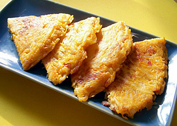 操作時間:15分鐘 難度指數(shù):★★ 營養(yǎng)指數(shù):★★★★ 原料:土豆絲、面風(fēng)、雞蛋、培根、番茄醬、鹽。 制法: 、倥喔,洋蔥切成小塊,土豆切成很細(xì)的絲,然后斬斷成2厘米長的碎段。 、诩与u蛋、面粉、番茄醬,少許鹽,攪拌均勻。 、蹮嵊,小火下鍋,攤成小餅。 小編TIPS:加入番茄醬,不但味道好,而且出來的顏色很漂亮哦,“剛剛能流動最好”,這樣攤出的餅薄厚均勻,而且容易熟。 推薦早餐減肥食譜:番茄培根土豆餅+豆?jié){+香蕉+紅棗+杏仁。 |