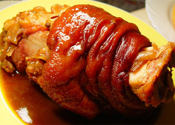 原料:豬肘子800克、蔥15克、姜15克。 調料:老抽15ml、生抽60ml、冰糖60克、鹽10克。 做法: 1、豬肘一個洗凈,最好選擇新鮮的,黑皮的豬會比較香。 2、用一根長繩將豬肘扎成筒狀,這樣煮的時候不會列開,同時煮好后,容易切成形狀。 3、將豬肘放冷水中,煮開,并將水棄之不用。 4、重新放入清水,豬肘,蔥打成蔥結,姜切成姜片,放入各種調料 5、煮至豬肘用筷子扎動即可。 6、煮好的肘子先不著急吃,放入冰箱,等涼透了再把繩松掉,切片食用。 |