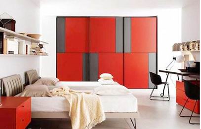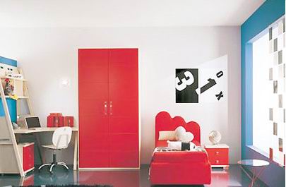 搭配點評:紅色與灰色搭配,看起來養(yǎng)眼也不會過時,紅色本身就是一種很深的色調(diào),灰白兩色恰好降低了臥室的溫度。