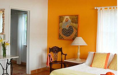 搭配點評:橙色的墻紙,為臥室營造了那么一種溫馨浪漫的感覺,棕色也屬于暖色系,采用棕色的家具跟地板也與臥室風(fēng)格相搭。