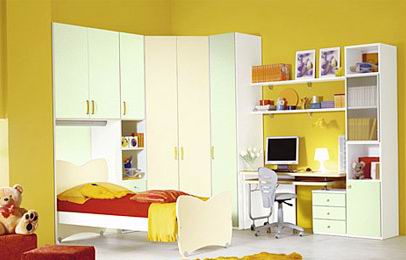 搭配點(diǎn)評(píng):橙色是一種很耀眼的顏色,也給人一種活躍調(diào)皮的感覺(jué),這種顏色很適合用在兒童房,有利于培養(yǎng)兒童樂(lè)觀向上的性格,米黃色相對(duì)橙色來(lái)說(shuō),色調(diào)稍淺,但感覺(jué)接近,兩者搭配在一起像融為一體。