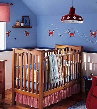藍色的墻面上,活潑的小狗正在追逐一只小皮球