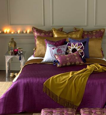 Arabian Bazaar 阿拉伯之夜的力量,將露天廣場神奇般變幻成女人味十足的浪漫閨房。 紫紅色與黃色大膽的搭配,延伸了Max馬克斯床品的高貴優(yōu)雅,透露魅影媚惑的女人氣息,點燃你深藏的激情。 搭配的裝飾靠墊,毫不保留地表達(dá)你的浪漫情懷,讓你的臥室里充滿濃郁色彩的節(jié)日氛圍,更加光彩奪目。