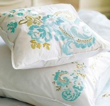 具有水彩色澤的冷色靠墊,或白或青或黃,清淡的底色,疊加冷調(diào)植物花紋,都可有效地配合和補(bǔ)充白地的床品,點(diǎn)綴和美化臥室空間。