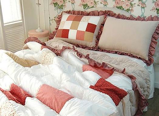在寒冷的冬季,充滿溫馨感覺的紅色格紋拼花床品最能帶給人溫馨舒適的感覺。結(jié)合白色的元素,增添了時(shí)尚的感覺。