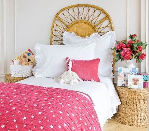 甜美的粉色星空?qǐng)D案床品,搭配素雅簡(jiǎn)潔的白色床單,讓臥室充滿女孩最愛的浪漫氣息。藤編床頭柜的點(diǎn)綴,讓這款房間增添了田園的感覺。