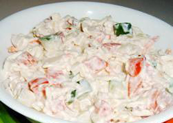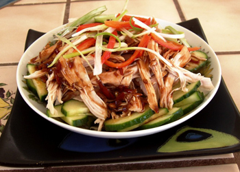 原料: 卷心菜375克,切成小塊,西紅柿1個,切成小塊,青瓜半根,切成小塊,紅洋蔥半個,切成小塊,糖1湯匙,鹽1茶匙,現(xiàn)磨黑胡椒半茶匙,蛋黃醬1湯匙 做法: 1.用一個大碗,將所有原料都混在一起攪拌即可。如有需要,可以多加蛋黃醬。 四川棒棒雞