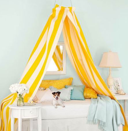 搭配繽紛臥室之黃色 這里更像是個游樂園,對比色的運用在這件臥室又產(chǎn)生了奇妙的化學反應(yīng),黃白相間的床簾設(shè)計,讓整個床都與眾不同起來,睡在上面,就好像睡在一堆糖果中般讓人愛不釋手。在單一的家具擺放中,大膽的用一些活躍的色彩,如明黃色等,把陽光帶進你的臥室,何樂而不為。
