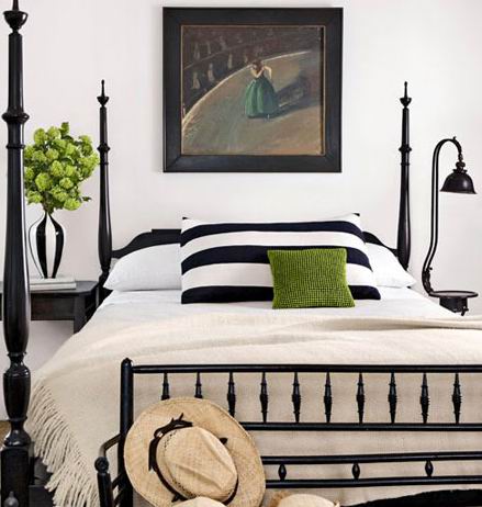 搭配繽紛臥室之黑色 臥室使用對比最強烈的黑白色,是個大膽的舉動,這里的經(jīng)典黑白運用,再一次將古典與現(xiàn)代的風格結(jié)合的完好無損。白色壓陣,任由黑色演繹它獨有的風尚底蘊。值得一提的是,綠色植物的加入,給這個臥室?guī)砹舜笞匀坏奈兜,骨子里散發(fā)著一股濃郁的鄉(xiāng)村之情,讓入住的人身心松弛愉悅。 |
