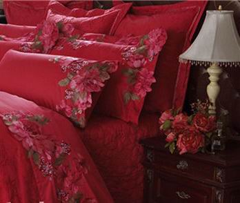 枕套上、床單上、小方枕上采用仿手工刺繡的針法繡制出靈動的割邊繡花,粉色與翠綠色繡花絲線,打造出立體生動的喜慶氛圍,既有中式傳統(tǒng)感,又有現(xiàn)代浪漫感。整套產(chǎn)品熱鬧喜慶,同時帶有女性的溫柔嫵媚。