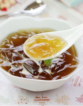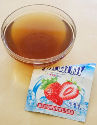 原料: 主料:酸梅湯350g、冰粉粉5g。 配料:煉乳少許。