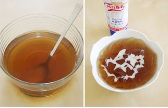 做法: 1、冰粉粉倒入一只干凈的容器; 2、現(xiàn)煮或重新加熱沸騰的酸梅湯沖入碗中; 3、攪拌均勻,降溫后放入冰箱冷藏2小時以上; 4、酸梅湯凝固后,用刀子劃成小塊,澆上少許煉乳即可。