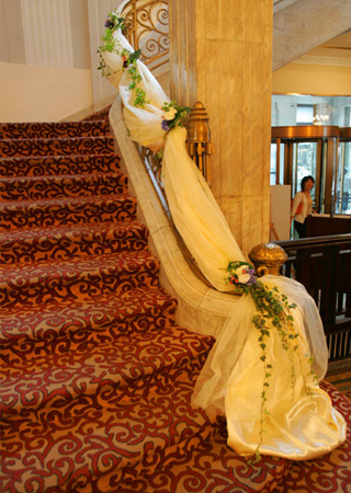 樓梯是通往婚禮現(xiàn)場最浪漫的通道,走在樓梯上,無論是從高而下,或是從下而上,往往會給人一種很奇特的感覺。