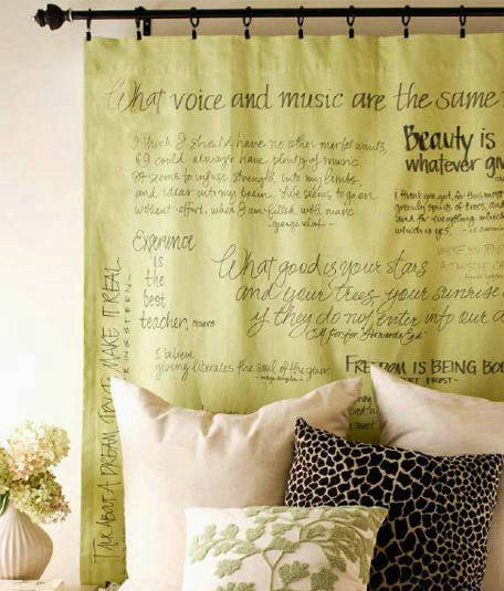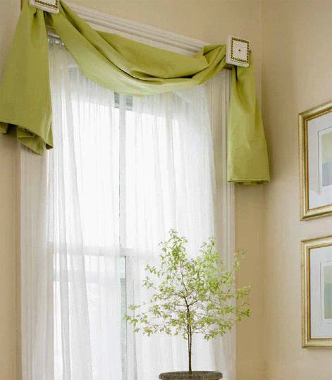 用臥室窗簾剩下的布料做塊床頭裝飾簾。即使你沒有床頭臨窗的尷尬,也能作為居室的亮點裝飾。 |
