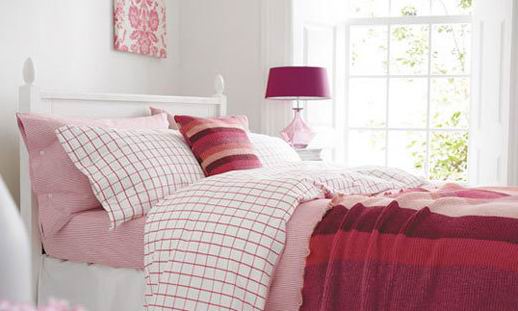 粉色的床品,散發(fā)出浪漫的氣息。白底粉線條的枕套與被套,給人簡潔、大方的感覺。而漸變色條紋的靠枕,給臥室?guī)砹颂竦瓕庍m的快樂。