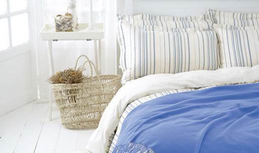 鈷藍(lán)色的床品,給人寧靜、清爽的感覺。白底藍(lán)色細(xì)條紋的枕套和被套,讓臥室充滿了純凈與清新的味道。
