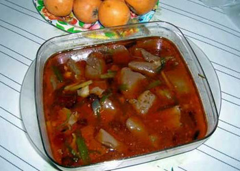 原料: 鴨血旺(雞血旺,豬血旺也可)一塊,小蔥七,八根,泡生姜,泡辣椒適量,將醬油兩大匙鹽,白糖一小咖啡匙,水豆粉,醋兩大匙,油酥辣椒一大匙,味精。 做法: 1、將血旺切小塊備用,蔥切兩厘米的段或切碎也可,泡生姜辣椒切碎,將醋、味精、豆粉用少量水調(diào)成汁等用。 2、鍋內(nèi)倒油燒七、八分熱,倒入泡生姜辣椒、醬油、白糖小火慢炒約一分鐘,放大半碗水和少許鹽燒沸,將血旺、油酥辣椒入鍋煮約5分鐘,再將醋、味精、豆粉調(diào)成的汁倒入攪勻,加蔥起鍋即成。 |