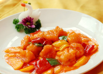 原料: 豬里脊肉200g,新鮮菠蘿100g,青椒1個,紅椒1個,雞蛋1枚,蒜粒10g,蔥10g,姜10g,生抽15ml,黃酒10ml,鹽3g,水淀粉15g,白胡椒粉3g,白醋20ml,番茄醬40g,白砂糖15g,干面粉50g,油400ml(實耗30ml) 做法: 1、將豬里脊肉洗凈,切成2cm*3cm長的肉粒,菠蘿也切成體積相等的方塊。青椒和紅椒切菱形片,蔥、姜、蒜切好備用。 2、肉粒放入碗中,調(diào)入生抽(8ml)、白胡椒粉、黃酒和鹽,拌勻腌10分鐘。 3、雞蛋打勻,倒入腌好的肉碗中,使每粒肉都裹勻蛋液。將裹好的肉粒放入面粉中,用手揉搓幾下,使肉粒表面干燥并全部裹滿面粉。 4、抖去肉上的多余面粉,備用。 5、炸肉塊時,要待油沸后才放下肉塊,沸油能將肉塊外層收緊,再轉(zhuǎn)小火慢炸,使肉塊能炸透。 6、炒鍋燒熱油(15ml),放入蔥姜蒜、青椒片和紅椒片,煸炒片刻。調(diào)入白醋、生抽(7ml)、番茄醬、白砂糖,以及半杯溫水,大火煮滾,并隨時攪動,避免煳鍋。 7、最后調(diào)入水淀粉,待醬汁熬至黏稠有膠性時,放入炸好的肉粒和菠蘿塊,拌炒均勻即可。 |