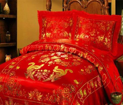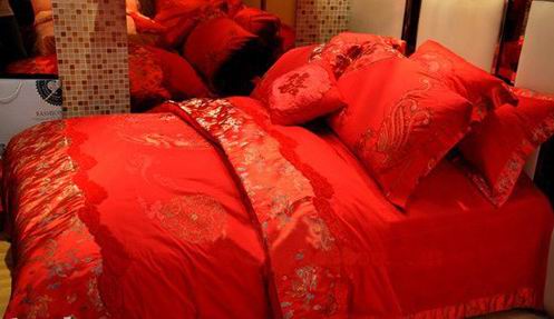此紅雙喜可非彼“紅雙喜”,雙喜的本意就是好事成雙,相愛(ài)的兩個(gè)人走到了一起,這款床上沒(méi)有繁雜的花紋,只有綿綿的愛(ài)意。大紅色襯托著新房旺氣十足,枕頭上一龍一鳳各附兩邊,小抱枕上甜甜蜜蜜的“囍”字坐臥中間,若即若離,相敬如賓,這不正是美好的婚姻象征嘛。