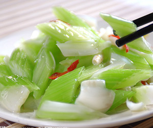 原料: 1,西芹,是較粗較厚實(shí)的那種,MM們應(yīng)該認(rèn)得的。洗凈,斜切成片。煮開水把西芹焯熟。這樣做的好處是營養(yǎng)不易流失。 2,百合,把外面的老皮剝掉,一瓣一瓣的剝下來,中間的綠心是苦的,不要。洗干凈。 3,作料:鹽,淀粉,味精,醬油。 做法: 油燒七成熱,放入百合稍炒,加入焯好的西芹,將少量淀粉勾芡收汁,加鹽,兩三滴醬油,一定要少放鹽和醬油。這種是簡單的做法,如果為了增加些色彩,可以切些胡羅卜片,和西芹一起焯熟,一起加入炒。