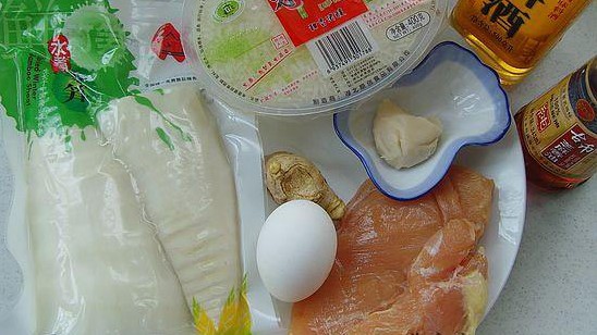 原料: 冬筍、雞胸肉。 調(diào)味: 雞蛋清、醪糟汁、白糖、豬油、生粉、水淀粉、料酒、香油、姜、蔥各適量。
