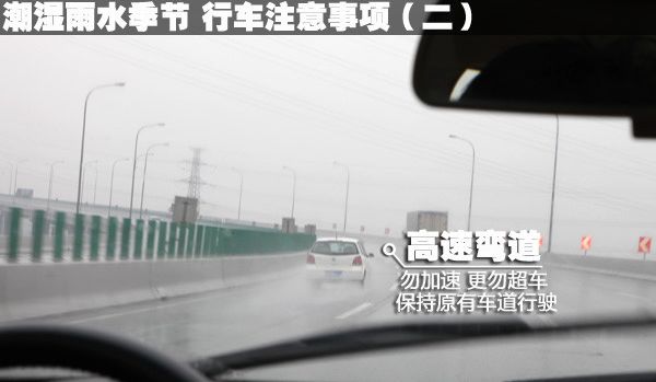 雨天路滑,請勿在高速彎道狂轟油門超車。雖然好車都有ESP,但不是所有ESP都能救你于危難之間。所以在雨天行車時,應保持較低的車速,盡量不要超車或者突然變線。
