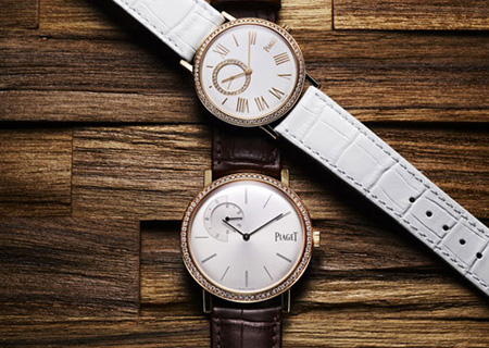 伯爵Altiplano系列 海豚式指針在12枚金質(zhì)時標(biāo)上運轉(zhuǎn),不僅易于讀取,更保留典雅的伯爵美學(xué)。為不影響環(huán)形寶石的鑲嵌效果,伯爵標(biāo)志為此特別置于水晶表面內(nèi)層,而非表盤上。表圈分別鑲嵌78顆和72顆鉆石,進(jìn)一步呈現(xiàn)這兩枚腕表高貴典雅的特色。腕表配有黑色鱷魚皮表帶,配搭伯爵Altiplano系列獨有的針式表扣,并鑲有一排23顆鉆石,與表圈設(shè)計互相輝映。 卡地亞Mille et une heures de Cartier系列 籍由此典雅瑰麗的Mille et une heures(一千零一個小時)珠寶腕表系列,卡地亞開啟時空穿越之旅,在古印度之疆,拉基斯坦(Rajasthan)邊境,齋普爾(Jaipur)之門,印度穆斯林(蒙古)宮廷藝術(shù)(Mogul art )的發(fā)祥地,擷取靈感。