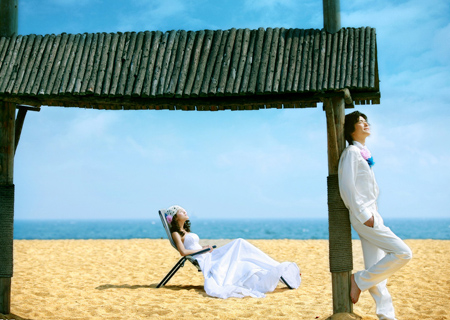雖然沒有人可以保證那天一定是個好天氣,但是你可以先研究一下海灘的四季天氣變化情形,選擇風和日麗的日子來舉辦海灘婚禮。選定日期:首先,聯(lián)絡一下當?shù)氐挠H朋或者登陸網(wǎng)絡上的天氣頻道,找出這樣一個月份:每天的天氣都非常溫和。然后根據(jù)傳統(tǒng)風俗,在這個月里選定一個宜結(jié)婚的好日子;槎Y當天時間表:根據(jù)一天當中海岸的風力變化和日照時間長短,有計劃地部署婚禮,制定你的婚禮時間表。首先,選擇風小的時候,交換誓言。如果海風過于猛烈,就要用一個漂亮的紗幕擋在后面作為屏障。其次,盡量避開日光強烈的中午時間而選擇光線比較柔和的日落時分舉行儀式,這樣才能拍攝出效果比較好的海景儀式照片。 最后,還要特別注意一下潮汐的漲落規(guī)律,一定要知道一般在什么時候會發(fā)生潮涌,避免潮水沖走沙灘上的物品。 |
