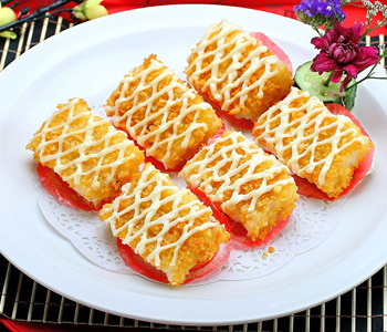原料: 紅、白蘿卜600克,粘米粉350克,水1050克,肉末,香菇,蝦皮,蝦米少許 做法: 1.紅、白蘿卜、香菇切成細(xì)絲,粘米粉和水和勻備用。 2.肉末稍提前用鹽、雞精、胡椒粉等腌制備用。 3.將肉末、蝦米、蝦皮、香茹絲下油鍋炒香。 4.倒入米粉漿同炒,直至米漿變濃稠,用鏟子鏟動(dòng)較費(fèi)力時(shí),即可調(diào)味關(guān)火。 5.倒入涂好油的模具中,上鍋蒸1小時(shí)15分鐘。 6.檢驗(yàn)蘿卜糕是否蒸好,只要用一根筷子插入蘿卜糕中,撥出筷子,上面沒(méi)有沾上米漿即可,如果筷子上沾有米漿帶出,即是內(nèi)部還未熟透,需繼續(xù)蒸制。 |