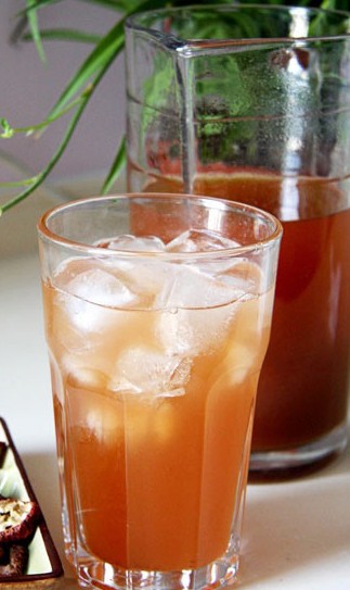 做法: 1、山楂干沖洗干凈,直接放入冷水中,小火慢慢加熱;小火煮的目的是為了把山楂的味道更多的煮出來(lái); 2、把果丹皮切成小塊,放入鍋中; 3、果丹皮下鍋后十分鐘內(nèi)要攪拌幾次,防止粘在鍋底;如果偷懶的話那就把果丹皮切的再碎一點(diǎn),這樣在鍋里會(huì)很快融化掉; 4、至少要煮四十分鐘的時(shí)間,山楂飲的口味才會(huì)濃郁,如果時(shí)間再長(zhǎng)一點(diǎn)效果會(huì)更好。出鍋前放冰糖,待冰糖全部融化之后關(guān)火即可。 5、在煮制的過(guò)程中,會(huì)產(chǎn)生很多絮狀物,其實(shí)都能吃的,不過(guò)把雜質(zhì)過(guò)濾一下口感會(huì)更細(xì)膩。 囑咐幾句: 1、山楂干在大一點(diǎn)的超市都有賣,中藥店也有,煮之前一定要仔細(xì)清洗干凈; 2、如果喜歡汁濃汁稠的,則要把糖和山楂一起同時(shí)放入鍋內(nèi),糖的份量要加倍,可以換成白砂糖; 3、煮制的全程一定要保持小火。 4、煮好后要選擇玻璃材質(zhì)的容器保存,不要在鍋存放較長(zhǎng)時(shí)間,以免與金屬發(fā)生化學(xué)反應(yīng); 5、自制的飲料不添加防腐劑,所以最好在一兩天內(nèi)喝完。 |