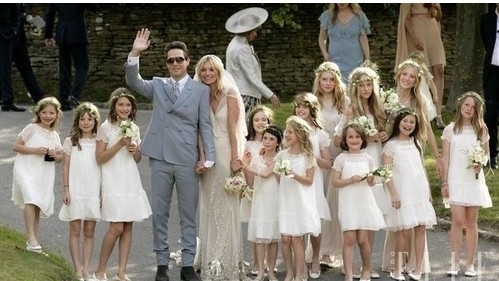 凱特·莫斯 (Kate Moss) 大婚現(xiàn)場(chǎng)最漂亮的風(fēng)景莫過(guò)于十五個(gè)穿著小白裙的女花童啦,其中有凱特·莫斯 (Kate Moss) 她8歲的女兒麗拉·格麗斯 (Lila Grace)。