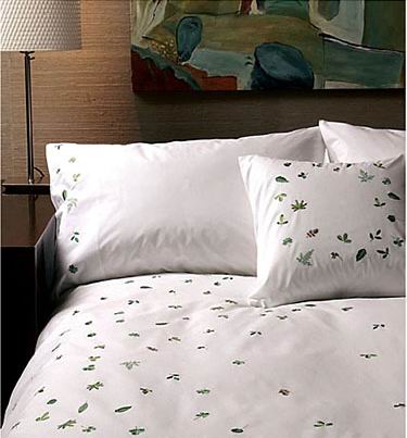 白底上面一片片綠色的小樹葉,感覺特別清新,但是又不覺得幼稚。相信男女都會喜歡吧!配上床頭的裝飾畫,給人理性又不失浪漫的感覺。