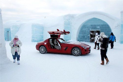 在基律納南面幾公里的地方,我們很偶然的碰到了當(dāng)?shù)匾惶幹穆糜尉包c(diǎn)——尤卡斯耶爾維的冰旅館,每年冬天這里都由4.5萬噸冰塊建造而成,20年來它吸引了無數(shù)附庸風(fēng)雅的藝術(shù)家、雄心勃勃的游客、疲憊不堪的公司高管。我們把車停在旅館門口,很快吸引來不少好奇的游客,他們紛紛舉起手中的相機(jī)拍照留念,而我們則把眼前的旅館看了又看。 回到了大路上,我找到了更多的自信,車身穩(wěn)定控制系統(tǒng)提供了運(yùn)動(dòng)模式,可以在電子設(shè)備令人掃興的干預(yù)之前允許車身出現(xiàn)一些轉(zhuǎn)向過度。在干燥的賽道上很難體會(huì)到這種設(shè)定的好處,但是在這個(gè)冰天雪地的地方則完全不一樣,好比攀巖者身上拴著的安全帶,你可以盡情的玩耍,享受驚險(xiǎn)不斷的樂趣,同時(shí)也不必?fù)?dān)心真正的危險(xiǎn)造成的傷害。