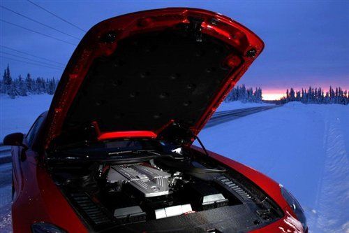 現(xiàn)在天色已經(jīng)全暗了下來,我們?cè)诨囊爸幸越咏?30Km/h的速度在雪地上飛奔。其實(shí)挺沮喪的——一整天我沒有那一次把油門踩過四分之一的深度,不過我也體驗(yàn)到了這款超跑的全天候全地形能力,F(xiàn)在外面的溫度是零下20度,不過按下啟動(dòng)鍵車輛仍舊毫不費(fèi)力的點(diǎn)火發(fā)動(dòng),車內(nèi)溫度維持在23度,傳動(dòng)部件齒輪與齒輪之間的配合沒出現(xiàn)任何問題。如果有人告訴你極端天氣測(cè)試沒有任何必要,別聽他的。