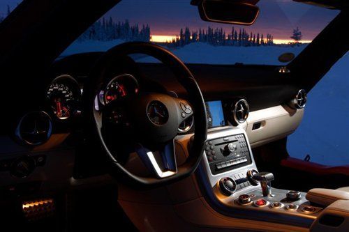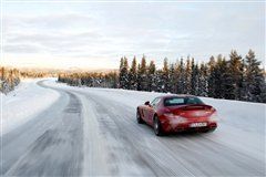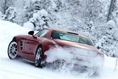 不過駕駛著2011款SLS AMG,我還是非常小心,腳下任何稍微過頭的動(dòng)作都會(huì)讓6.2升V8發(fā)動(dòng)機(jī)狂躁不安,讓你跳起冰雪華爾茲。我早早的把雙離合變速箱切換到手動(dòng)模式并且使用換擋撥片來控制,可惜在電子系統(tǒng)的干預(yù)下它的換擋反應(yīng)似乎不夠迅速。