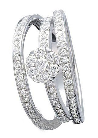 Forevermark永恒印記鉆石戒指。三重指環(huán)加之精巧的花朵造型,將鉆石的璀璨與優(yōu)美的造型完美地結(jié)合,盡顯鉆石的高貴典雅,三重指環(huán)的巧妙設(shè)計將新娘的指間襯托的更加具有完美感,讓新娘的指間煥發(fā)一種獨特的美感。