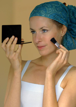 6.高光粉 五官當中最顯著的地方就應該給它涂上一層高光。比如T字區(qū)和顴骨的地方,涂抹上之后讓整個臉看起來更加的明亮和立體。