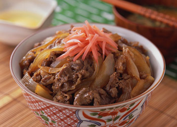 原料: 切片肥牛200克,中型洋蔥半顆,蒜頭兩瓣,姜絲適量 做法: 1.鍋內(nèi)冷油,放入洋蔥條,蒜片,姜絲略爆香.(不要把洋蔥炒的太軟) 2.倒入事先調(diào)制好的照燒醬. 3.等鍋內(nèi)的照燒醬燒開后,放入肥牛片. 4.燒開后轉(zhuǎn)小火一直燒至汁變的濃稠,快收干時(shí)即可起鍋. 5.紅蘿卜片和西蘭花用放了鹽,和香油的開水燙熟后,放在碗邊裝飾. 海鮮炒飯