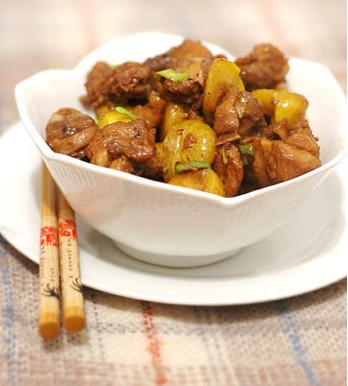 原料: 雞全腿、板栗、蔥、姜、料酒、醬油、鹽、白糖。 做法: 1、去殼的板栗入鍋煮4分鐘左右撈出瀝干水備用。 2、鍋中放油,油的量可以稍多點(diǎn),放入板栗炒到表面變色后撈出備用。 3、余油再次燒熱,放入蔥姜片爆香,倒入雞塊翻炒。 4、雞塊表面微黃后調(diào)入料酒,醬油,鹽,少許白糖加入板栗。 5、倒入開水,大火燒開后轉(zhuǎn)小火蓋上蓋,煮20分鐘左右。 6、再大火收干水份,撒入蔥段即可。 |