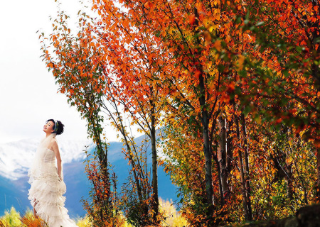 稻城的秋季(9月-10月)的景色是一年中最為夢幻的季節(jié),山火一樣的紅葉、綠的、黃的、紅的灌木叢搭配相間,與藍(lán)天白天交相輝印,在這個季節(jié)的夜晚和清晨觀看神山更是一種說不出的美麗。稻城外的紅草地與黃色的萬畝楊樹林讓人仿佛置身于色彩的海洋。