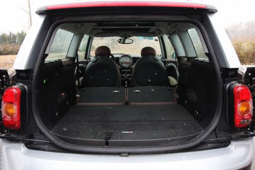 富有個性的內(nèi)飾設(shè)計讓人賞心悅目 MINI Cooper Clubman的外觀只是吸引眼球的一個方面,筆者認為MINI最大的賣點其實是其富有個性的內(nèi)飾設(shè)計。在現(xiàn)代生活中,人們做事都講究創(chuàng)意,MINI的內(nèi)飾絕對符合這一點,中控臺中央大號的車速表已經(jīng)成為MINI的標志性元素,為了突出MINI品牌蘊含的小巧可愛的理念,設(shè)計師采用了極多的圓形設(shè)計元素,細心觀察車內(nèi),你會發(fā)現(xiàn)所有部件都是圓潤的造型?照{(diào)控制系統(tǒng)的造型與MINI微標的造型有異曲同工之妙,轉(zhuǎn)向燈撥桿尾端的圓錐造型讓人不禁并攏四指去感受那細致的工藝,電動玻璃控制開關(guān)被安置在了中控臺下端,上下?lián)軇拥牟僮鞣绞阶尮P者不禁想到了老式的半導(dǎo)體收音機。由于該車的軸距為2547mm,所以前后排空間都夠用。后備箱容積為260L,如果將后排座椅放倒,那么后備箱容積將擴大到930L。