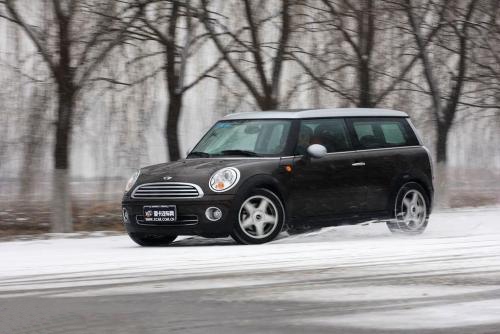 運動風(fēng)格的底盤調(diào)校 雖然MINI Cooper Clubman不是以操控為最大賣點,但是該車運動風(fēng)格的底盤調(diào)校讓筆者異常興奮,精準的轉(zhuǎn)向使得該車時時都能按照筆者的意圖行駛,清晰的路面反饋讓筆者在城市中也能體會到運動的快樂,不過該車的轉(zhuǎn)向盤略顯沉重,女士駕駛時可能會感覺比較費力。該車搭載的是一款1.6L直列4缸自然吸氣式發(fā)動機,并搭配一款6擋手/自一體變速器,在自動模式下,由于發(fā)動機的排量不大,所以感覺油門響應(yīng)比較遲緩,當(dāng)發(fā)動機轉(zhuǎn)速到1700r/min時即可感覺到自動變速器在自動加擋,當(dāng)切換到手動換擋模式時,轉(zhuǎn)向盤后方的撥片使換擋操作更加便捷。在擋臺上,該車還設(shè)置了一個Sport(運動模式)按鈕,當(dāng)按下該按鈕后,發(fā)動機的“怒吼”聲逐漸加大,發(fā)動機轉(zhuǎn)速達到3000r/min時才會自動換擋,使該車的運動性能進一步提升,不過筆者更鐘情于手動換擋模式,因為只有手動模式才能充分發(fā)揮出一輛車的運動潛質(zhì)。該車標配了16英寸車輪并搭配防爆輪胎,這種輪胎在壓力完全喪失的情況下仍能繼續(xù)行駛,保證了行車安全。