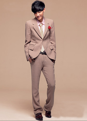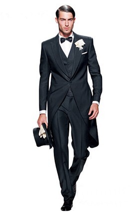 正統(tǒng)的英式燕尾服,頭戴大禮帽,身著筆挺的西裝,足登亮皮鞋。紳士給人的優(yōu)雅的感覺,以簡單的線條,塑造修長的身姿,與華美的宮廷式新娘禮服正好相得益彰。